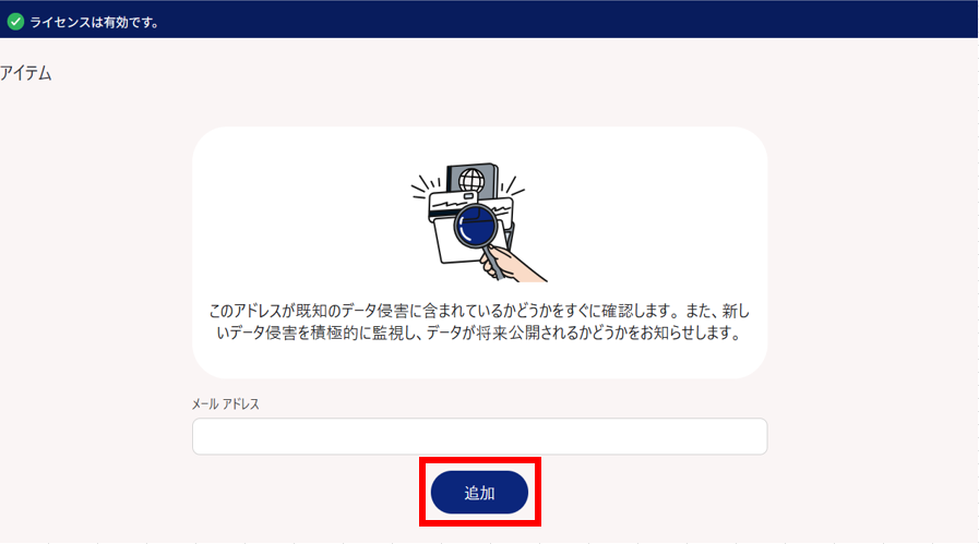 - 入力したメールアドレスで情報流出があるかはすぐにチェックされます。
