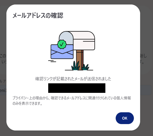 - 入力したメールアドレス宛に、確認メールが届きます。