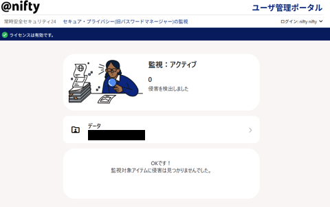 - @niftyセキュア・プライバシー(旧パスワードマネージャー)のユーザ管理ポータルにログインします。